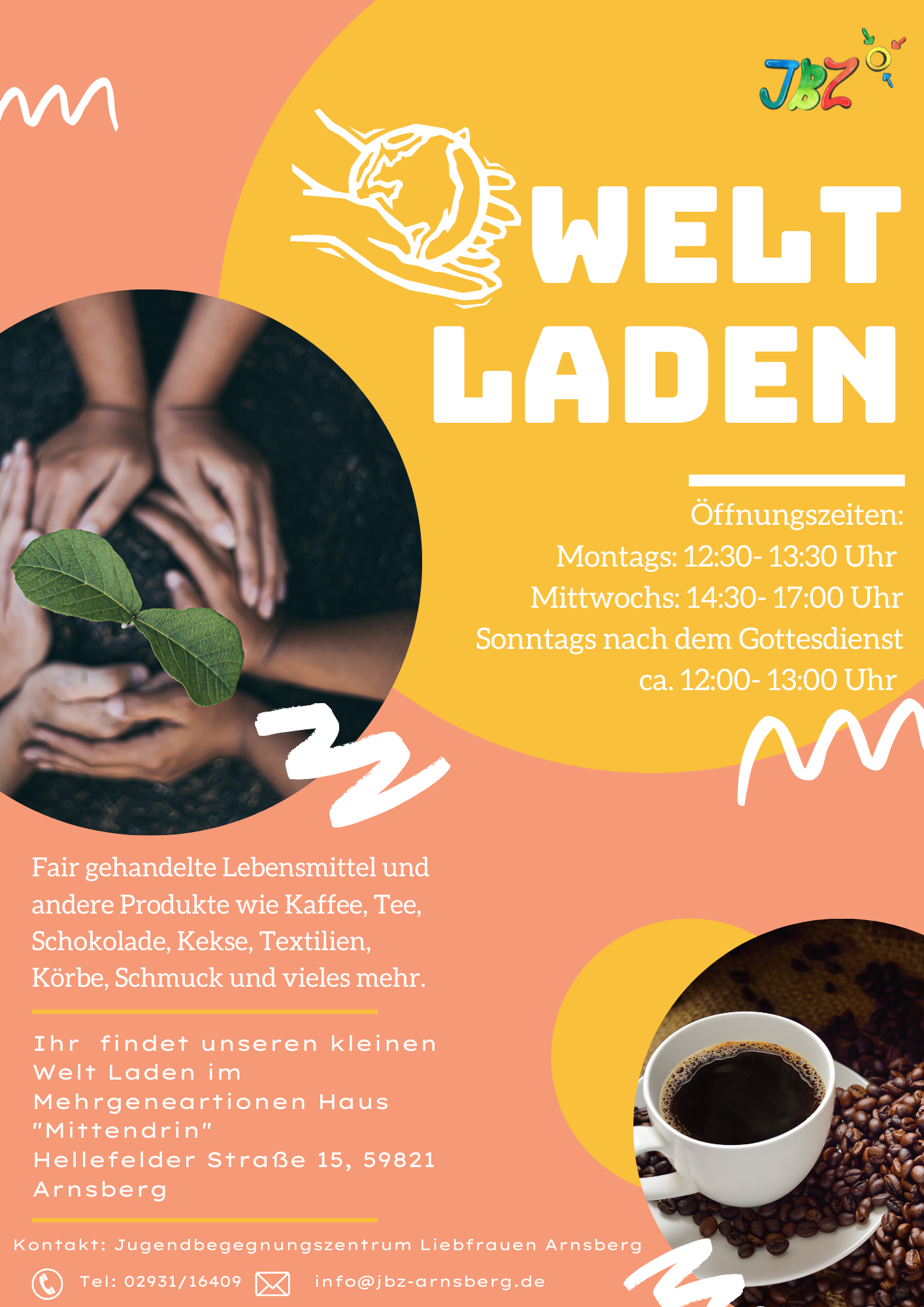 Stöbert doch mal durch unseren kleinen Weltladen im MGH! Ein tolles ehrenamtliches Team berät euch und schmeißt sonntags das Café nach dem Gottesdienst.