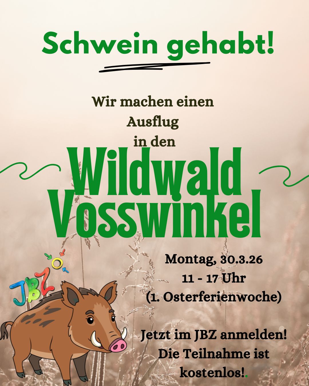 Durch unsere tolle Projektförderung des LWL können wir euch einen weiteren coolen Ausflug anbieten: Fahrt mit uns in den Wildwald Vosswinkel!
